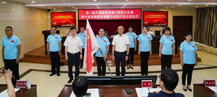 出征仪式上,全体队员庄严宣誓。队长陈虹林表示,将发扬“不畏艰苦、甘于奉献、救死扶伤、大爱无疆”的援外医疗精神,以仁心仁术讲好中国故事、讲好中医药故事,打造援外医疗队模范形象。